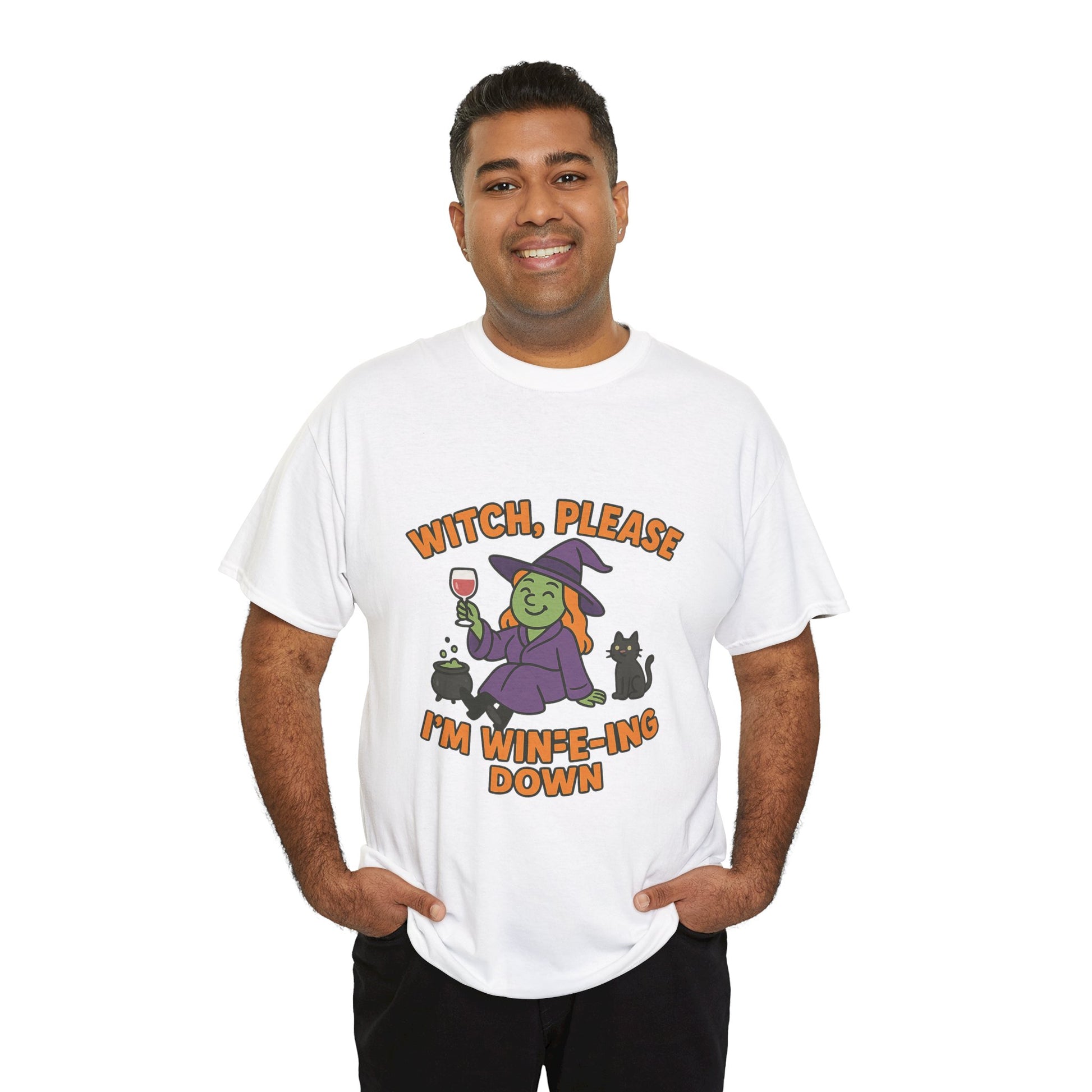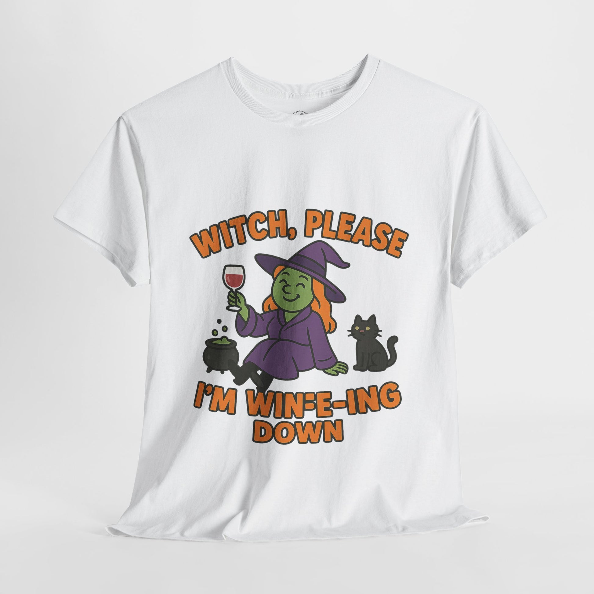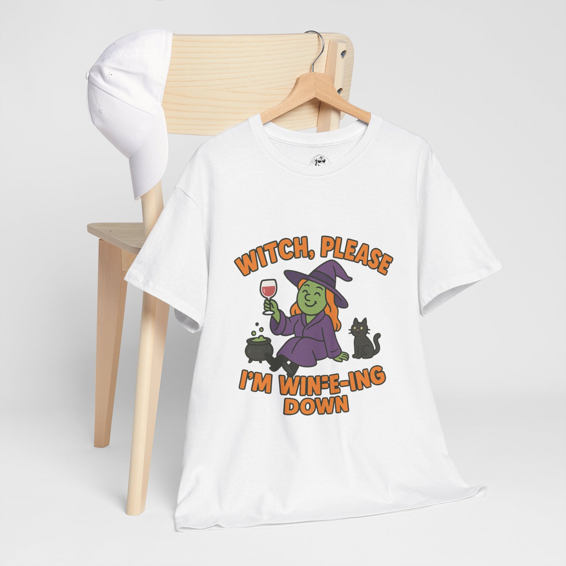 Had a long day of spells and sass? Slip into our “Witch Please, I’m Wineing Down” T-shirt – the perfect blend of Halloween humor and end-of-day relaxation. Featuring a laid-back witch sipping wine with zero cares, this tee is made for cozy nights, witchy wine nights, and all your spooky-season wind-downs.