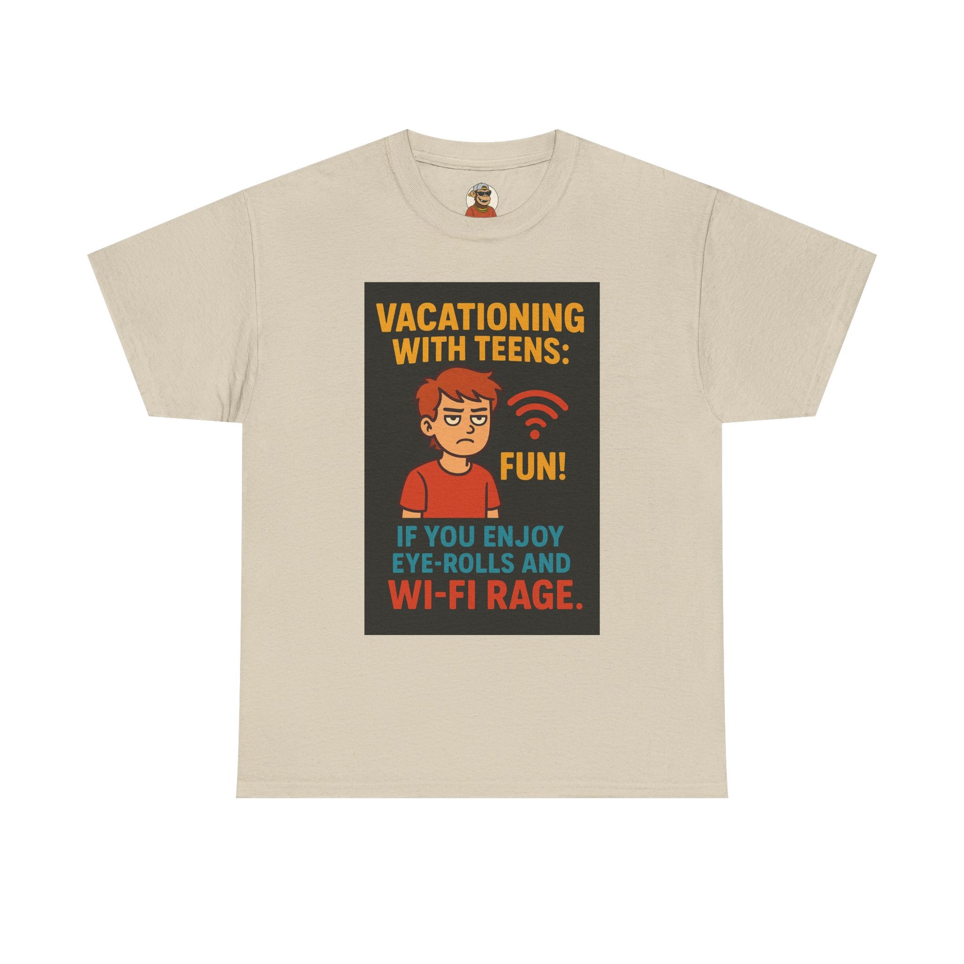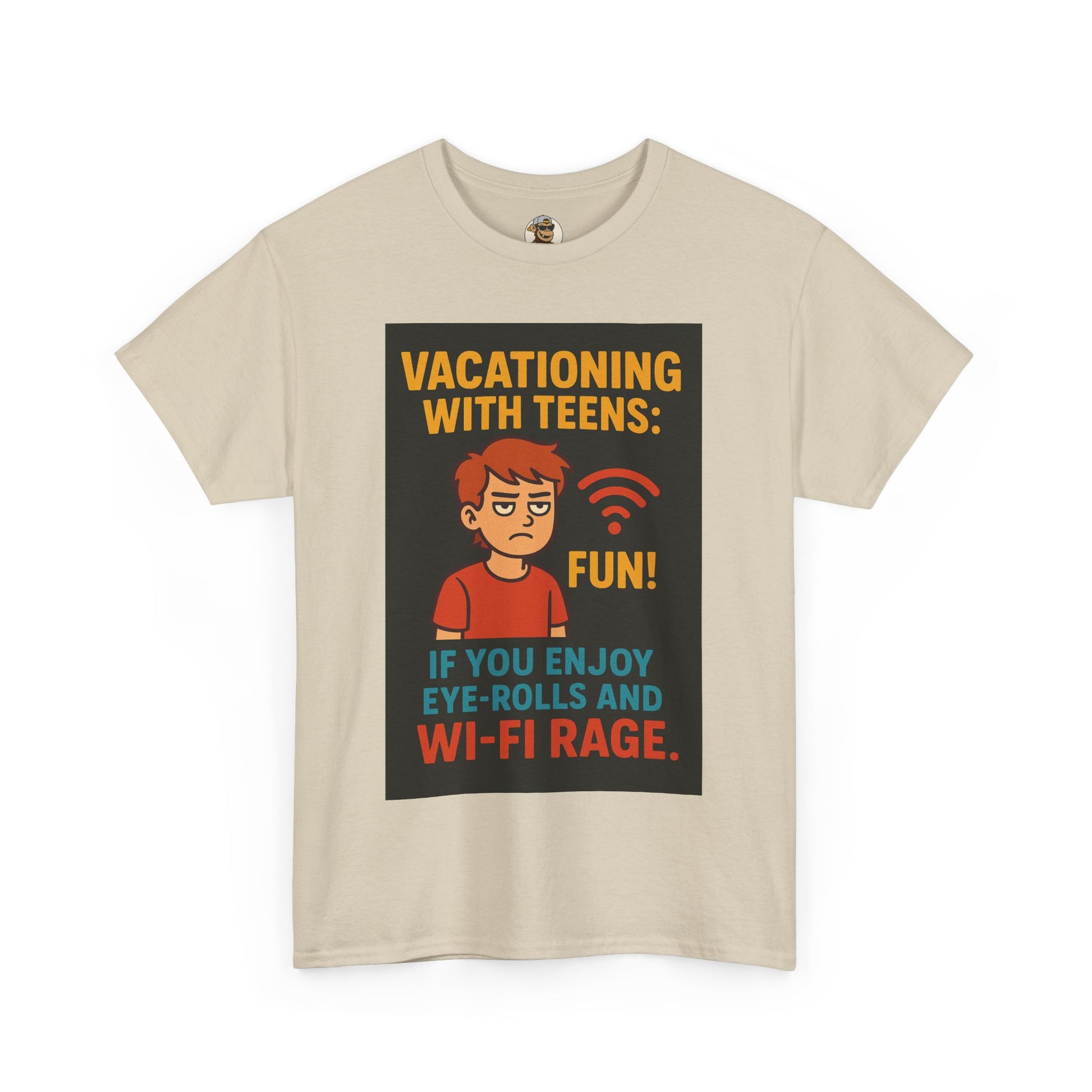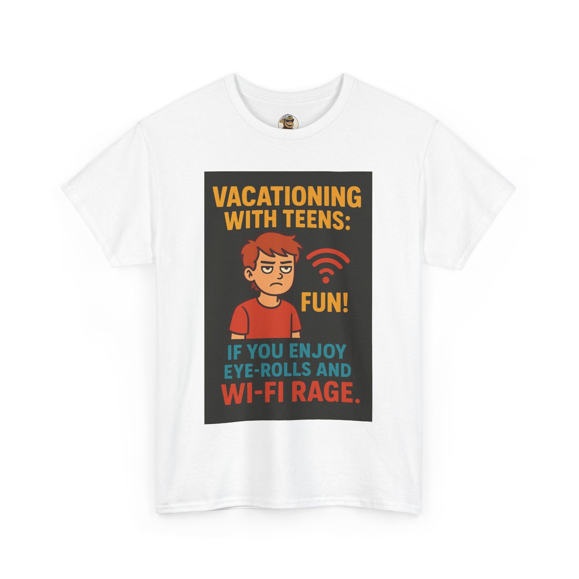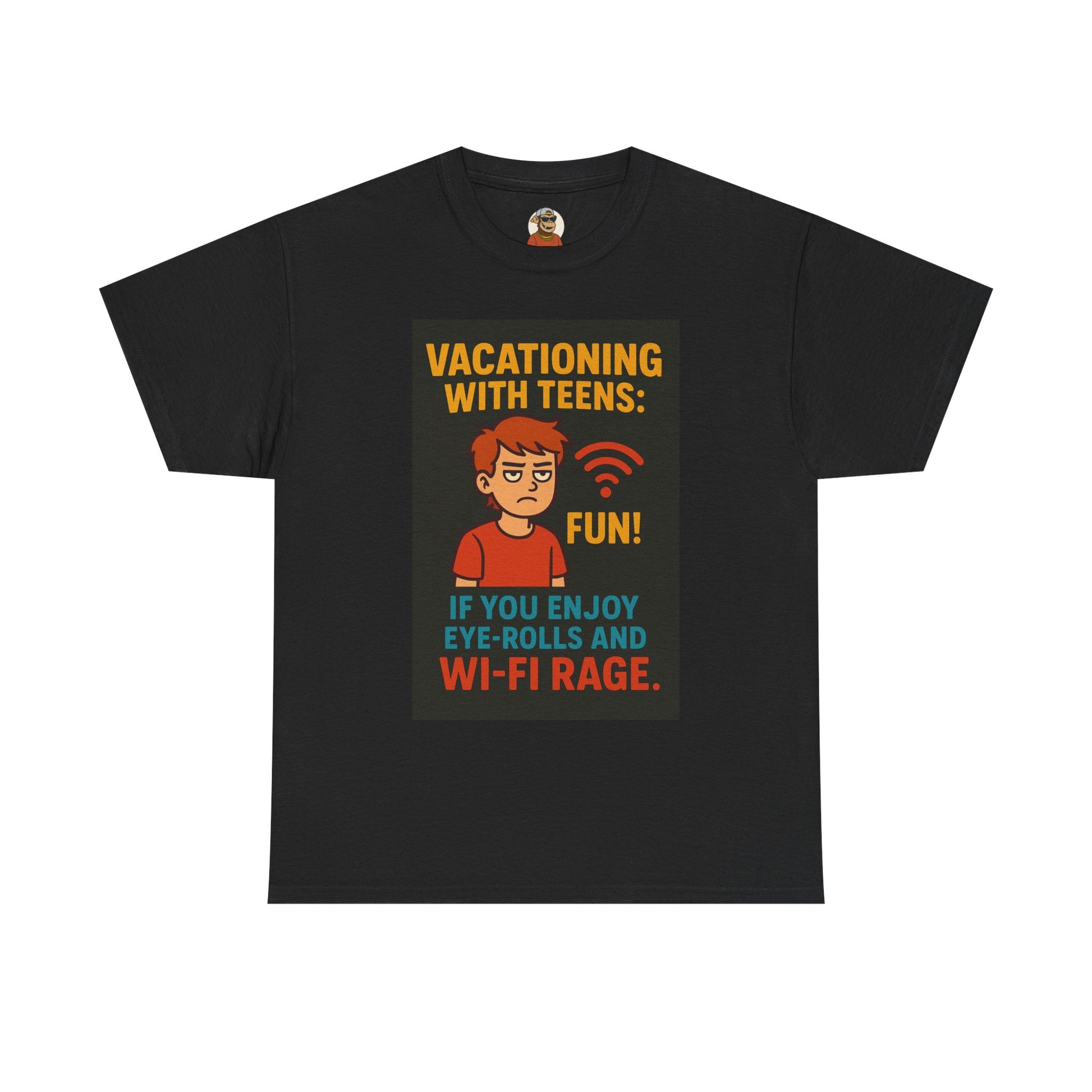 Headed on a family trip with your favorite mood-swinging, phone-charging, eye-rolling teenagers? This tee says it all. Our "Vacationing with Teens: Fun! If You Enjoy Eye Rolls and WiFi Rage" shirt is the ultimate funny vacation T-shirt for parents, capturing the chaos and comedy of modern family travel.